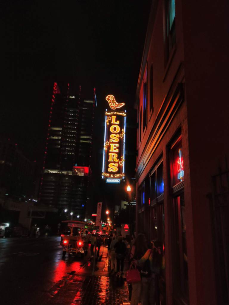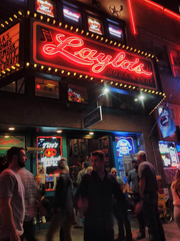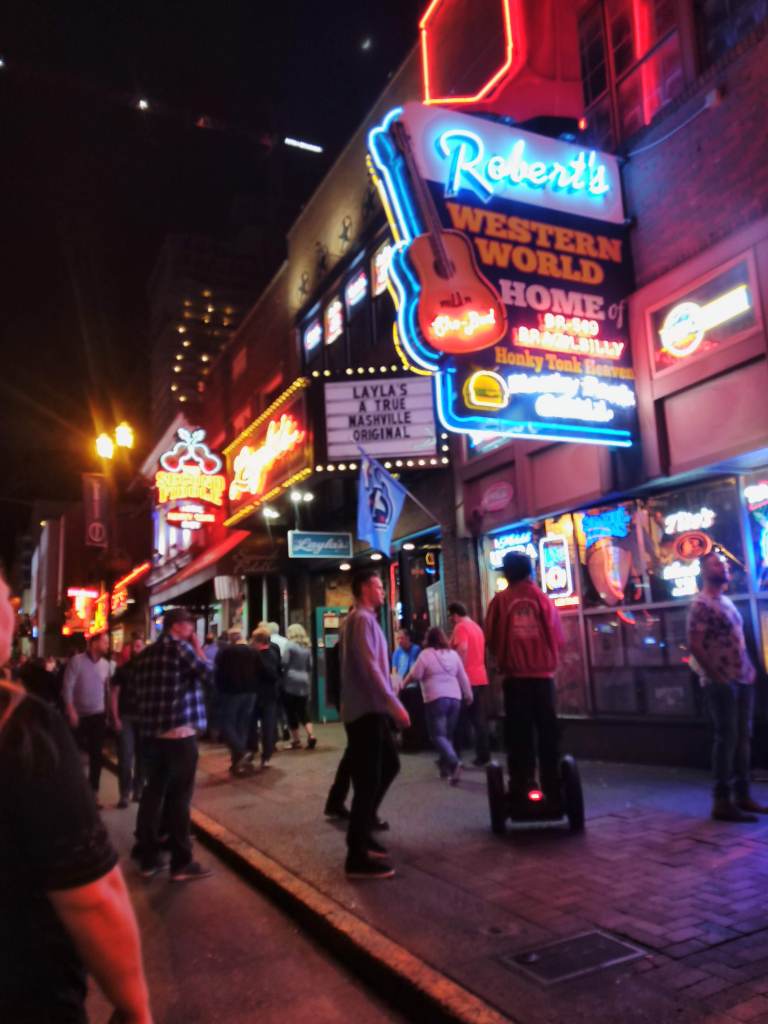 My cousin Lee, a musician and audio technician, recommended I be sure to check out Robert’s Western World and Tootsie’s Orchid Lounge, saying they’re solidly country music venues.