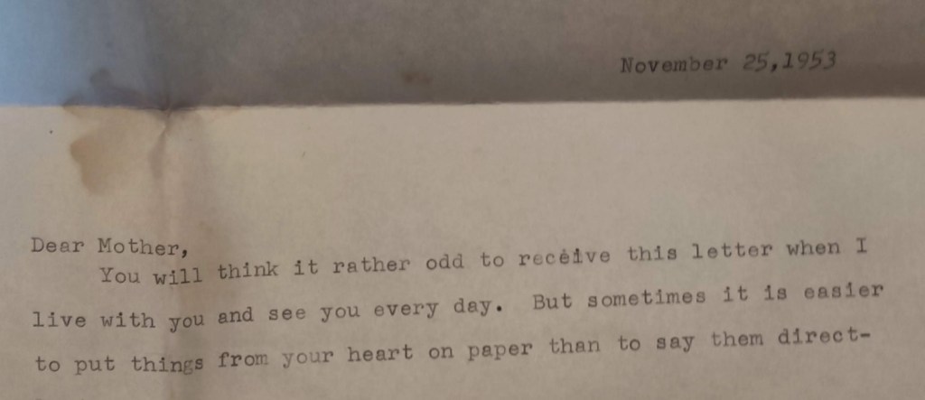 You will think it rather odd to receive this letter when I live with you and see you every day. But sometimes it is easier to put things down on paper than to say them directly to someone.